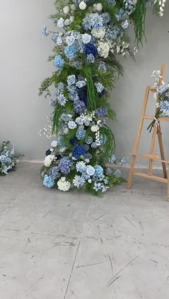 Bring sophisticated coastal elegance to any celebration with our breathtaking Coastal Blue Floral Arch. This 2.4-metre showpiece combines serene blues with crisp whites and lush greenery - perfect for creating that coveted 'something blue' wedding moment or sophisticated seaside-inspired styling.
