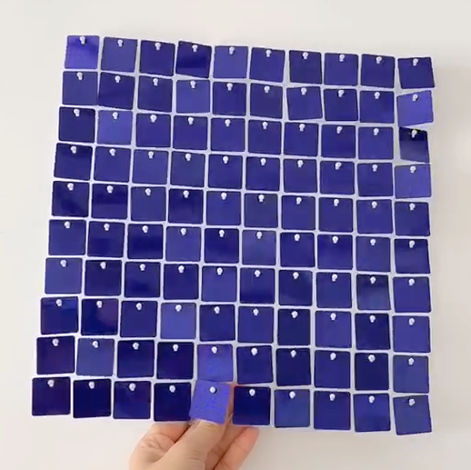 Our sequin walls are built on new style clear grid backing 30cm x 30cm panels. New model clip technology is much more flexible and easier to connect than models available from other suppliers