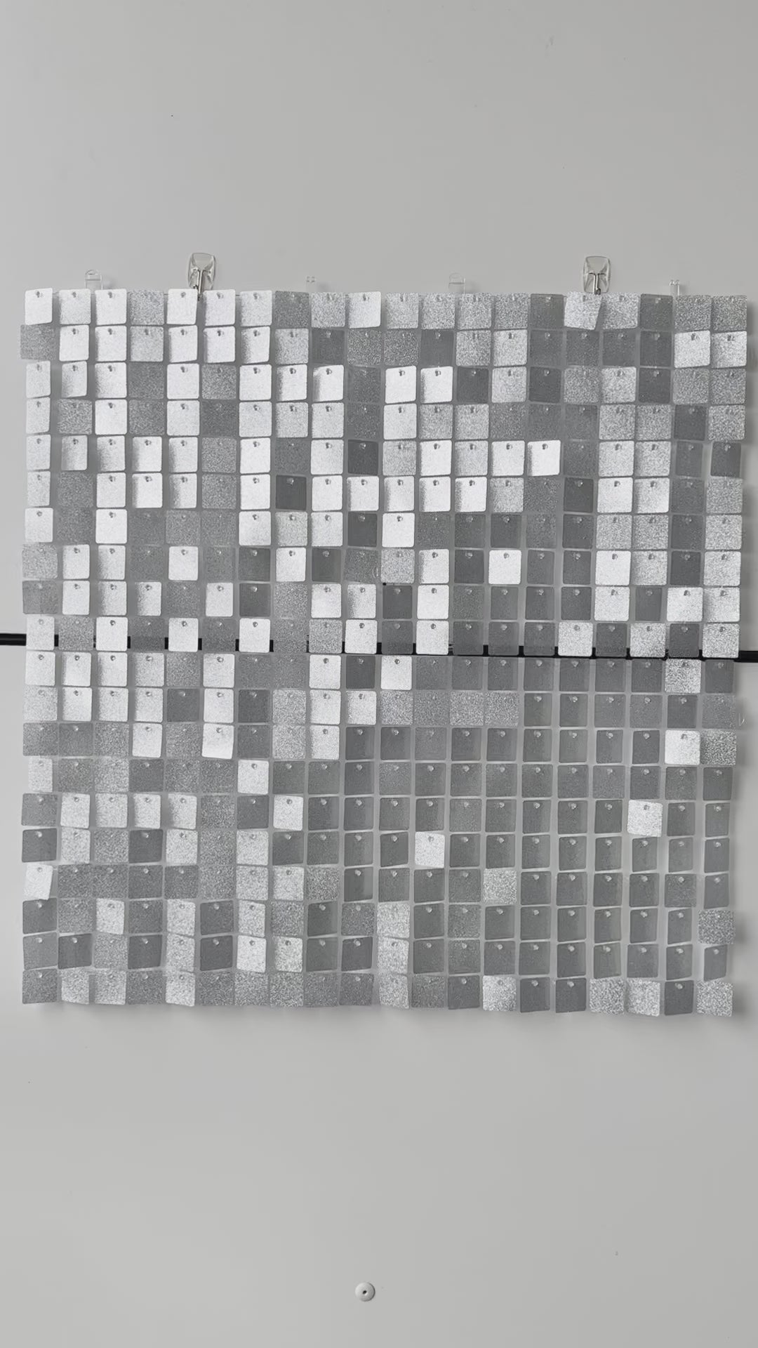 Our sequin walls are built on new style clear grid backing 30cm x 30cm panels. New model clip technology is much more flexible and easier to connect than models available from other suppliers