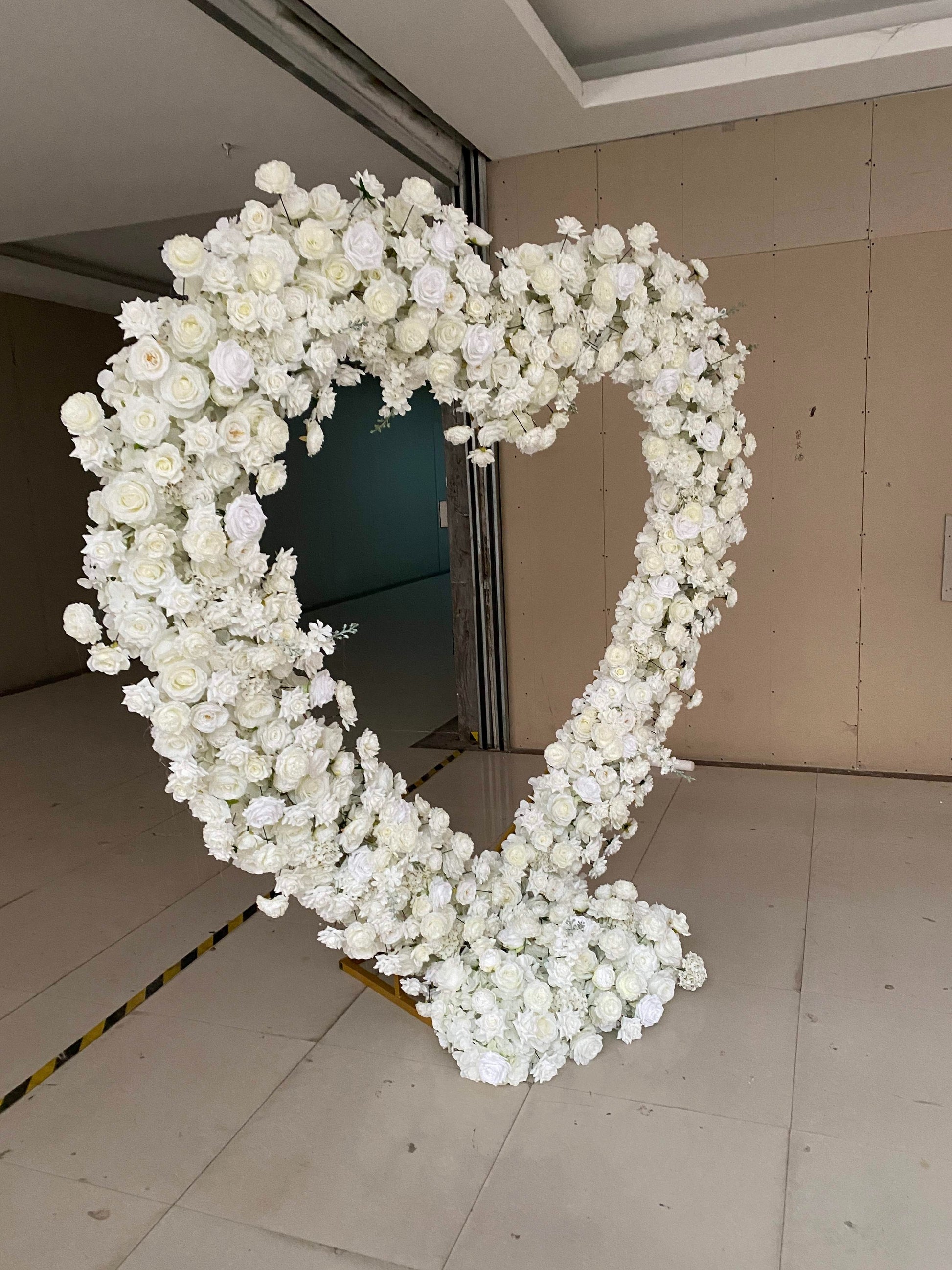 Luxury Ivory White Freestanding Floral Heart With Stand with full 3D effect florals to create a stunning backdrop