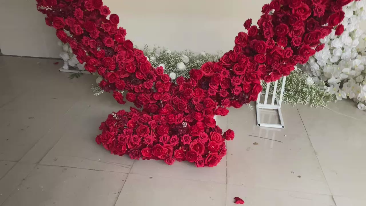 Luxury Red Rose With Greenery Freestanding Floral Heart With Stand with full 3D effect florals to create a stunning backdrop