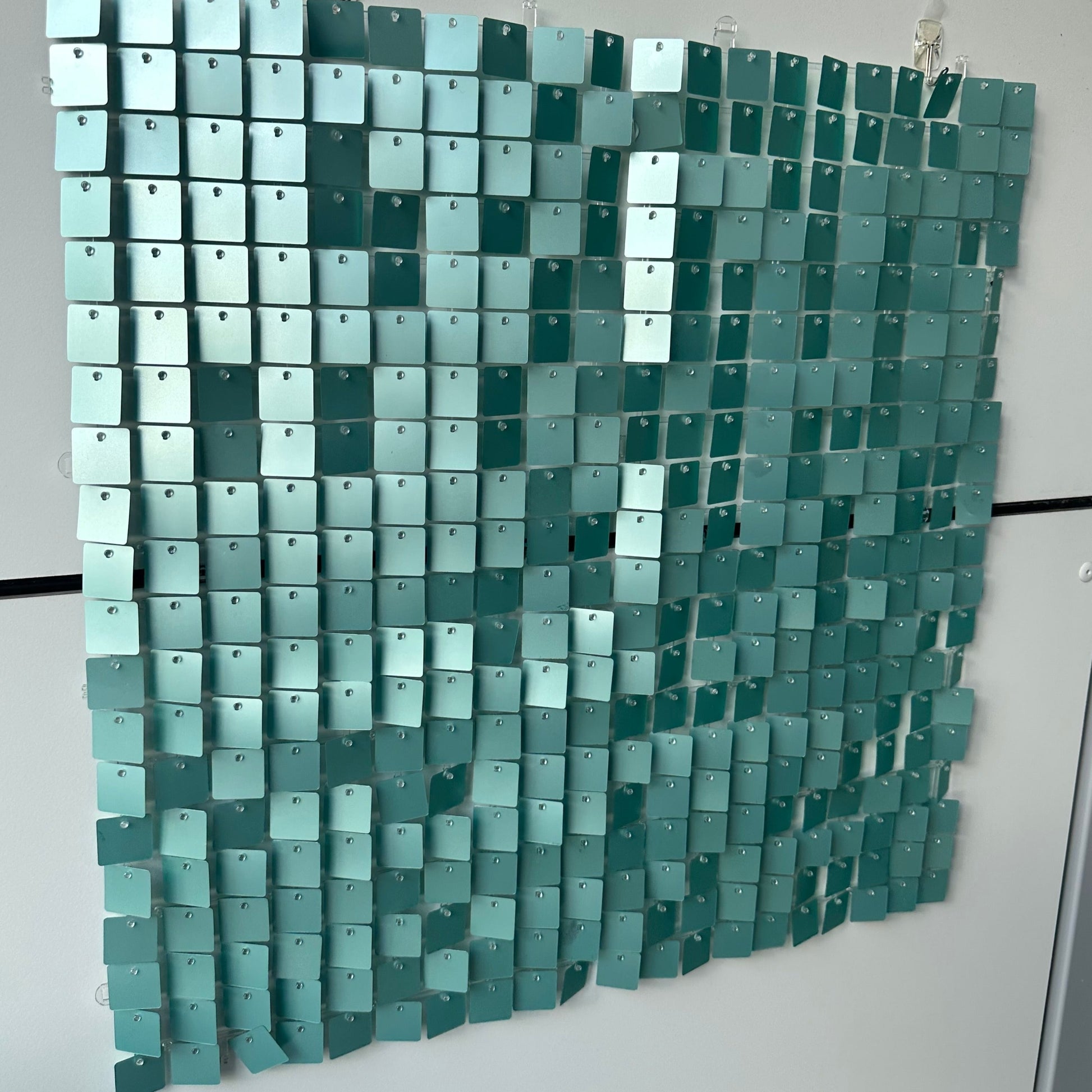 Our sequin walls are built on new style clear grid backing 30cm x 30cm panels. New model clip technology is much more flexible and easier to connect than models available from other suppliers