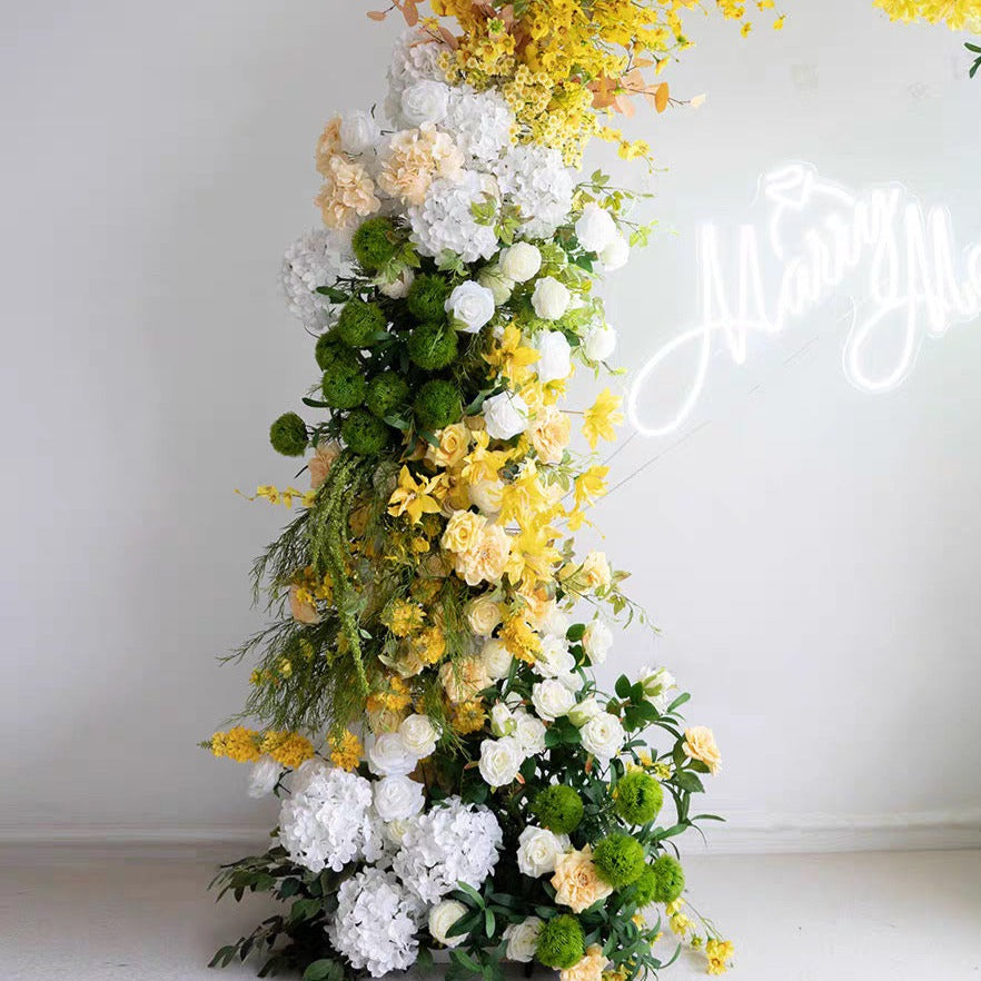 Multi Flower Greenery, Yellow & Ivory Floral Pillars – 2.3m