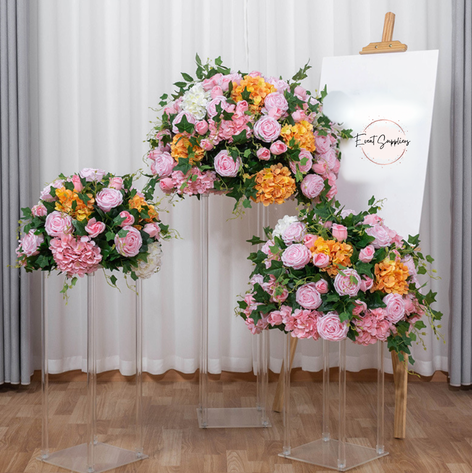 Pink Rose With Orange Floral & Foliage Centrepiece
