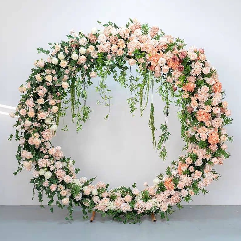 Pink & White Floral Foliage Hoop Backdrop - 2.1m