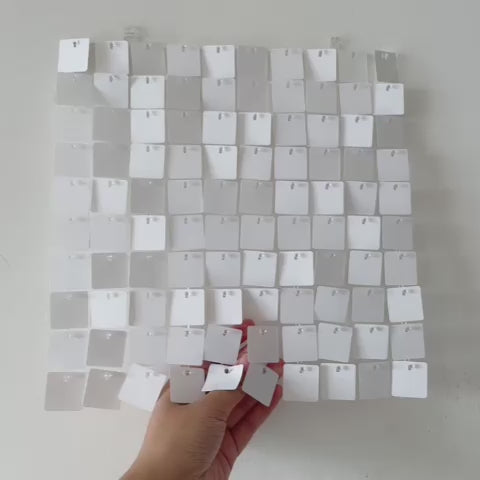 Our sequin walls are built on new style clear grid backing 30cm x 30cm panels. New model clip technology is much more flexible and easier to connect than models available from other suppliers