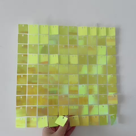 Our sequin walls are built on new style clear grid backing 30cm x 30cm panels. New model clip technology is much more flexible and easier to connect than models available from other suppliers