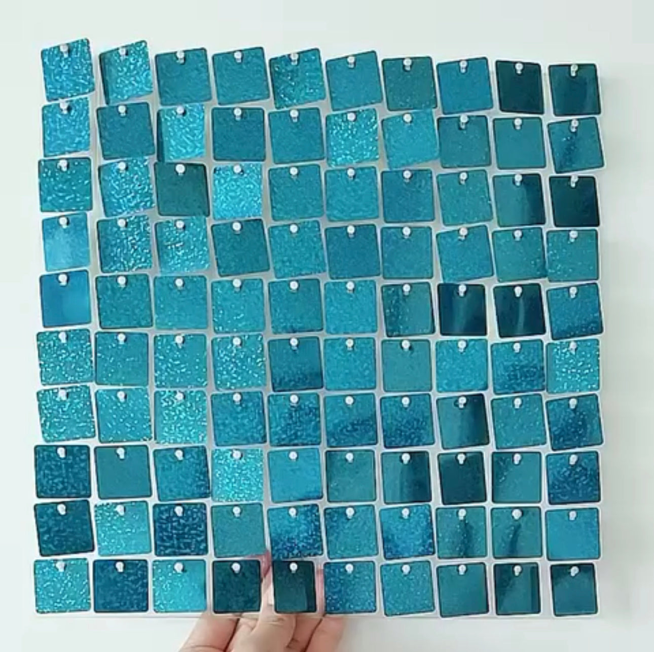 Our sequin walls are built on new style clear grid backing 30cm x 30cm panels. New model clip technology is much more flexible and easier to connect than models available from other suppliers