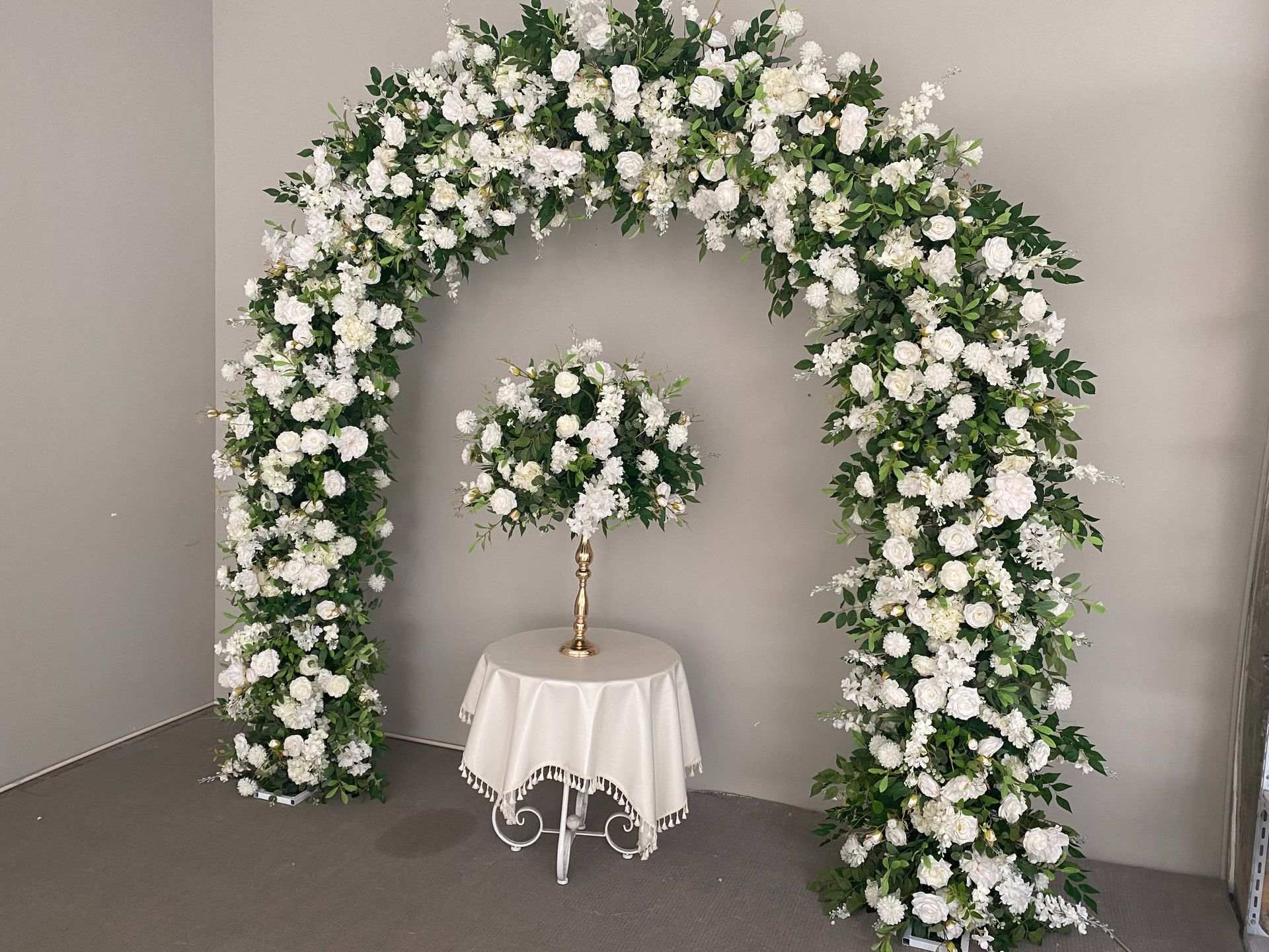 White Rose Floral & Foliage Arch Backdrop - 2.4m