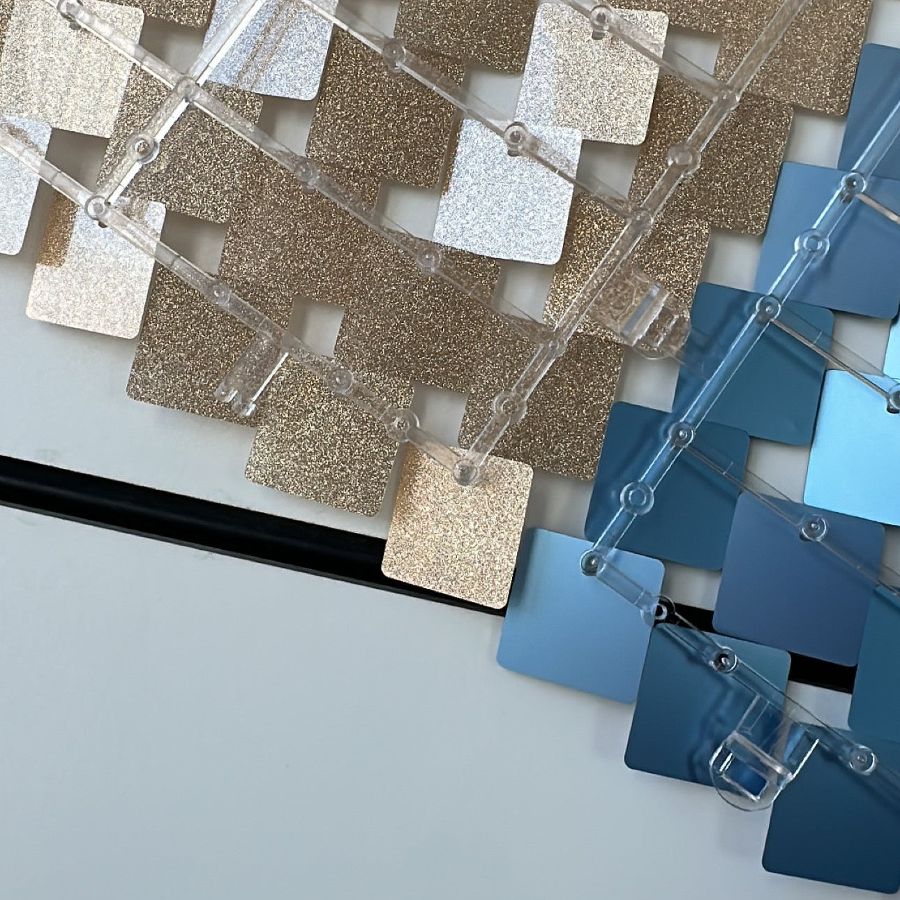 Our sequin walls are built on new style clear grid backing 30cm x 30cm panels. New model clip technology is much more flexible and easier to connect than models available from other suppliers